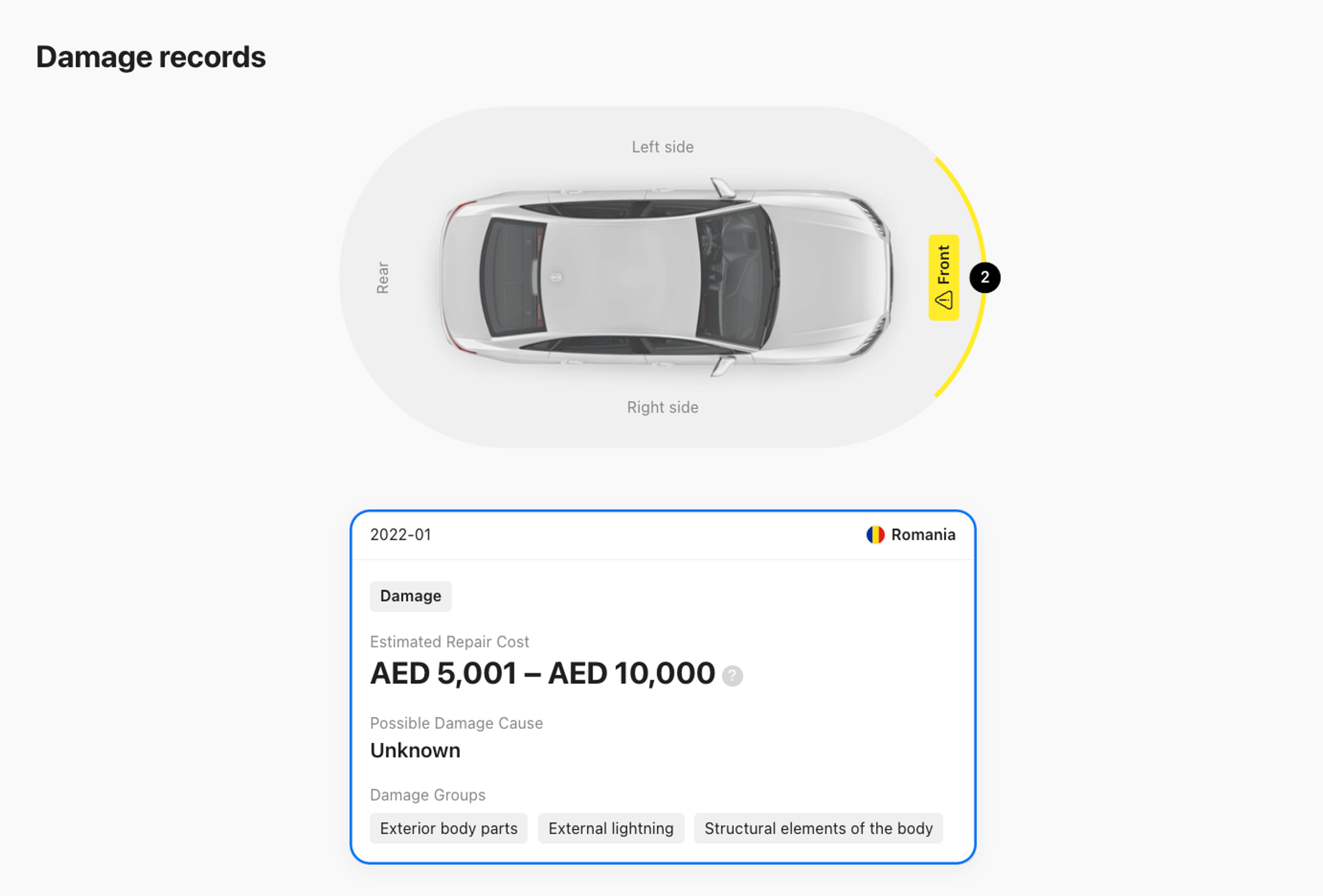 Also, some insurance companies offer a diminished value claim to cover for a vehicle's market value difference due to damage records in the car's history. If your insurance company offers a diminished value claim and the value of your car drops by, let's say, AED3700 even after repairing the damages – the insurer will cover that difference.