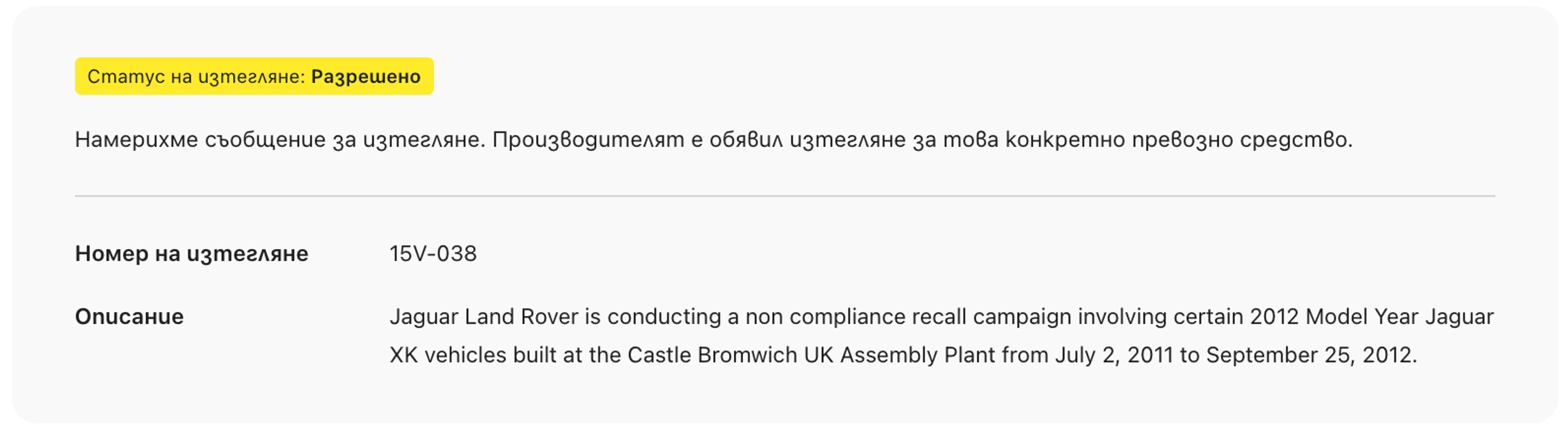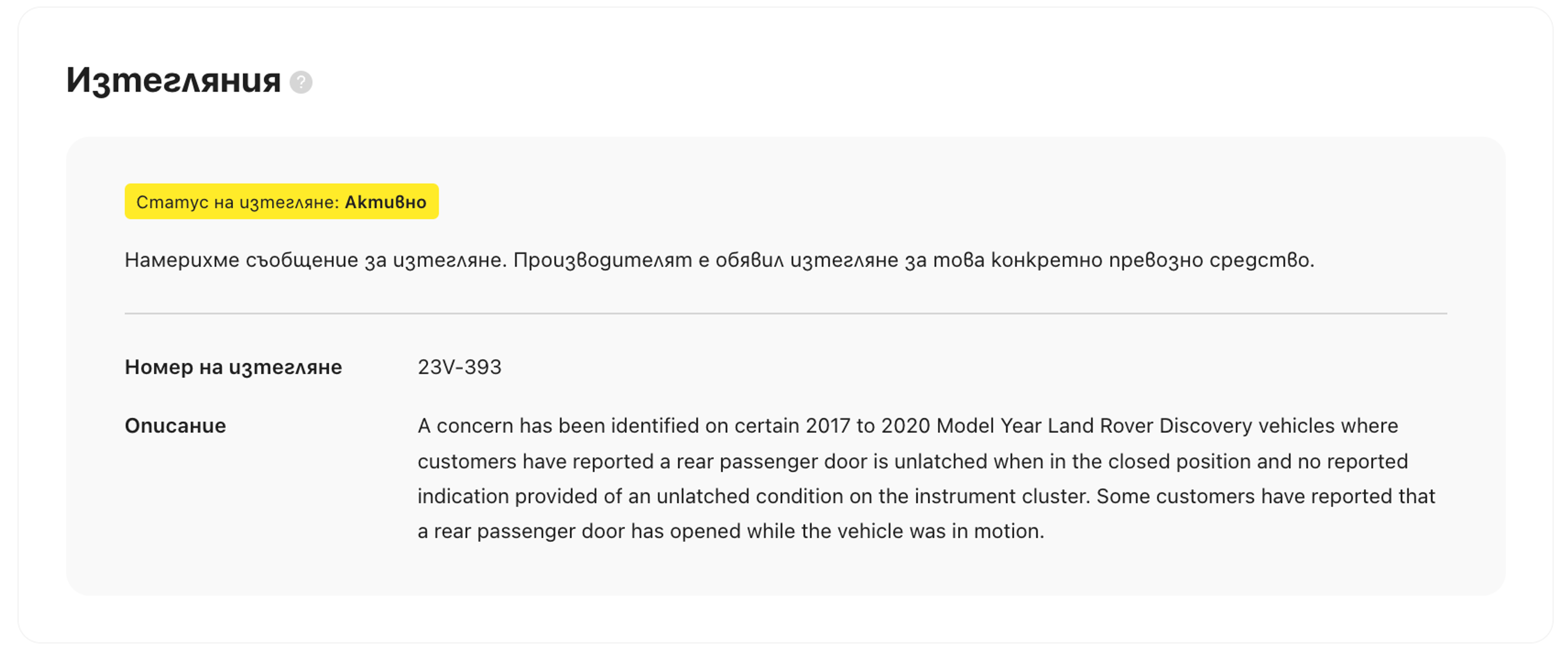 Това конкретно предупреждение е изключително важно за сигурността, тъй като собствениците на употребявани автомобили невинаги са наясно с изтеглянията, касаещи техните превозни средства.