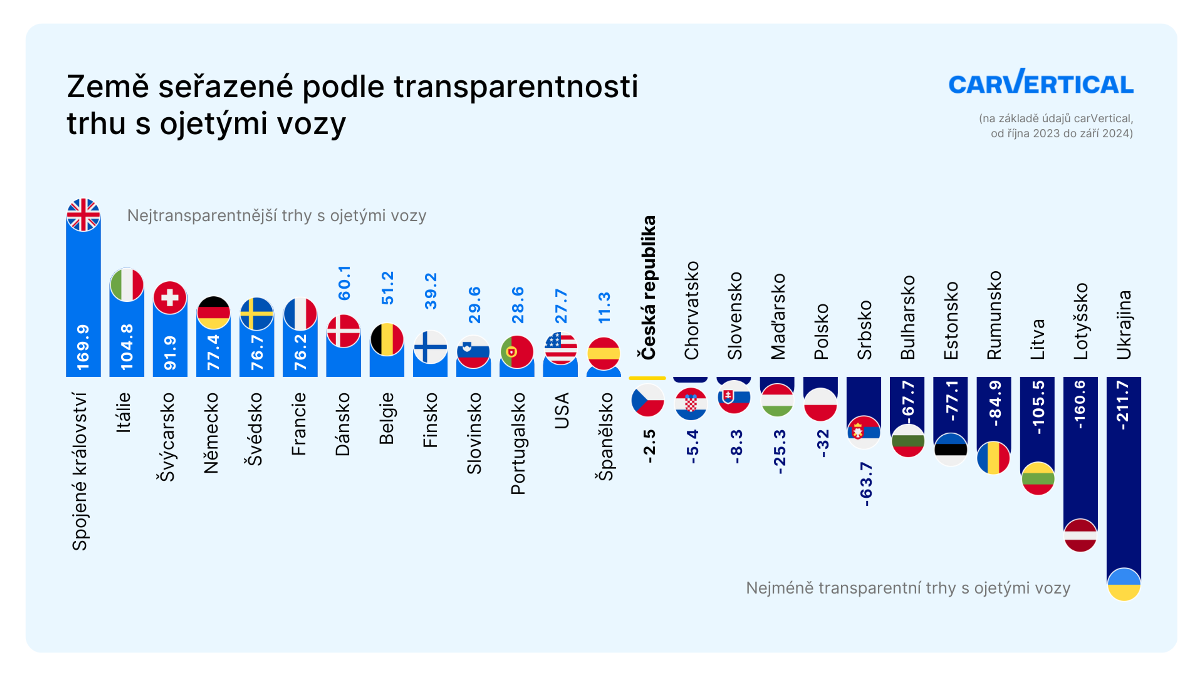 Díky naší studii jsme odhalili, že nejméně transparentní trhy představují Ukrajina, Lotyšsko, Litva, Rumunsko a Estonska. Tyto země se i letos drží na samém konci žebříčku. Na těchto trzích se můžeme často setkat s auty, které mají stočené kilometry nebo skryté vady, a navíc se sem ve velkém dováží starší vozy, což situaci ještě zhoršuje.