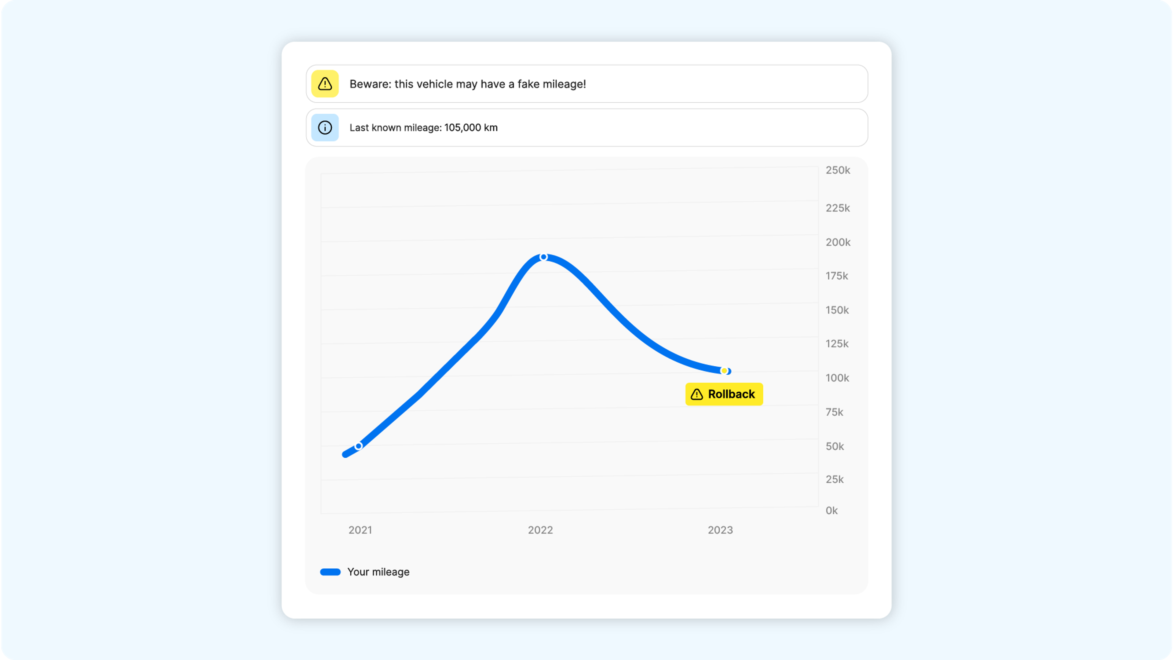 From the report, users would also learn about the car’s journey – arriving in Sweden, being sold to another owner in Sweden, and finally ending up in Finland. Using statistical models we can also provide the price range for this model of car, as well as an average mileage graph (although the latter would not change much, considering the mileage rollback!), and more.