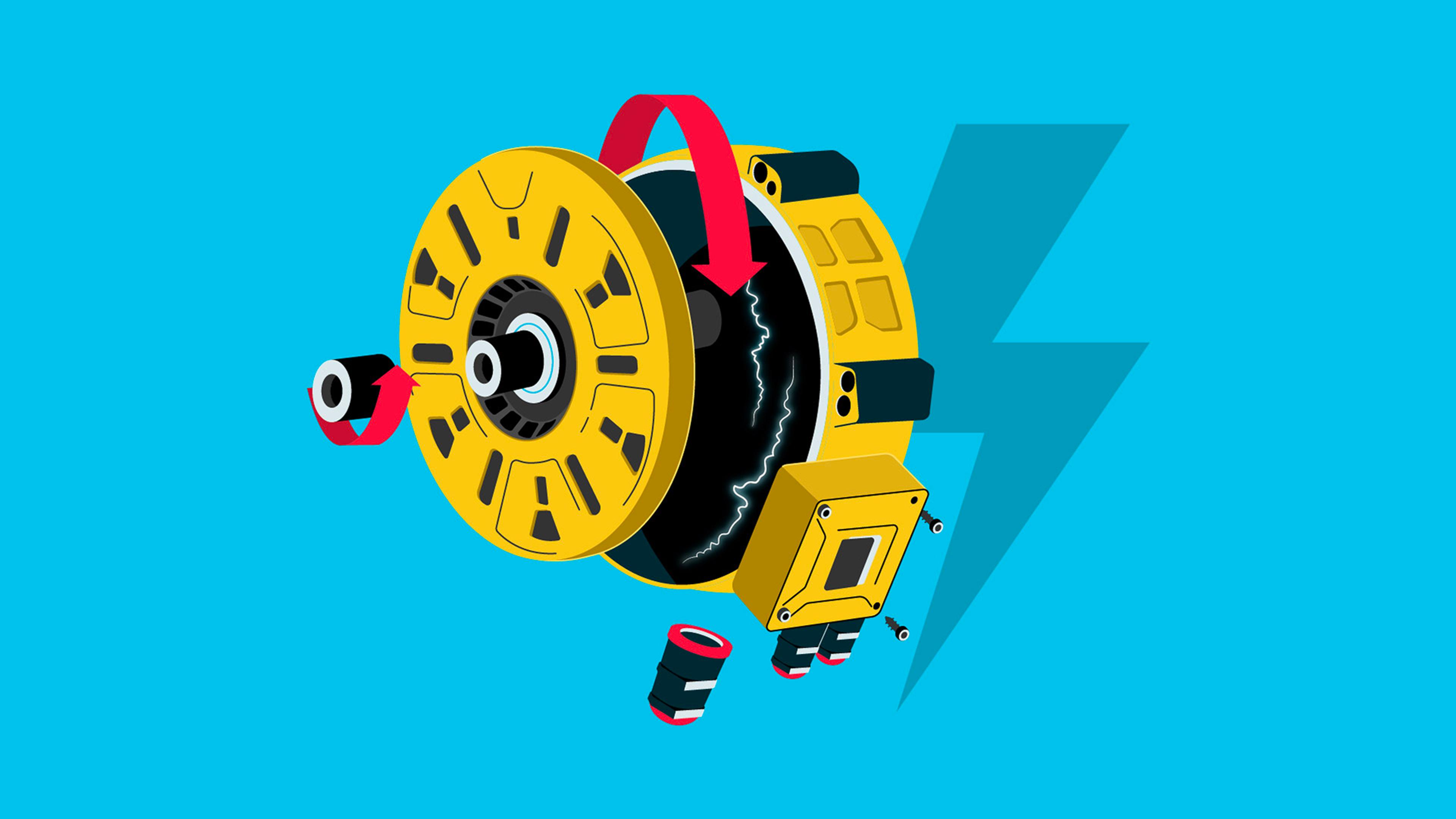 Elmotorer består av tre huvudsakliga delar: stator, rotor och hölje. När ström tillförs statorn, roterar rotorn till följd av ett elektromagnetiskt fält. Då konverteras strömmen till mekanisk energi.