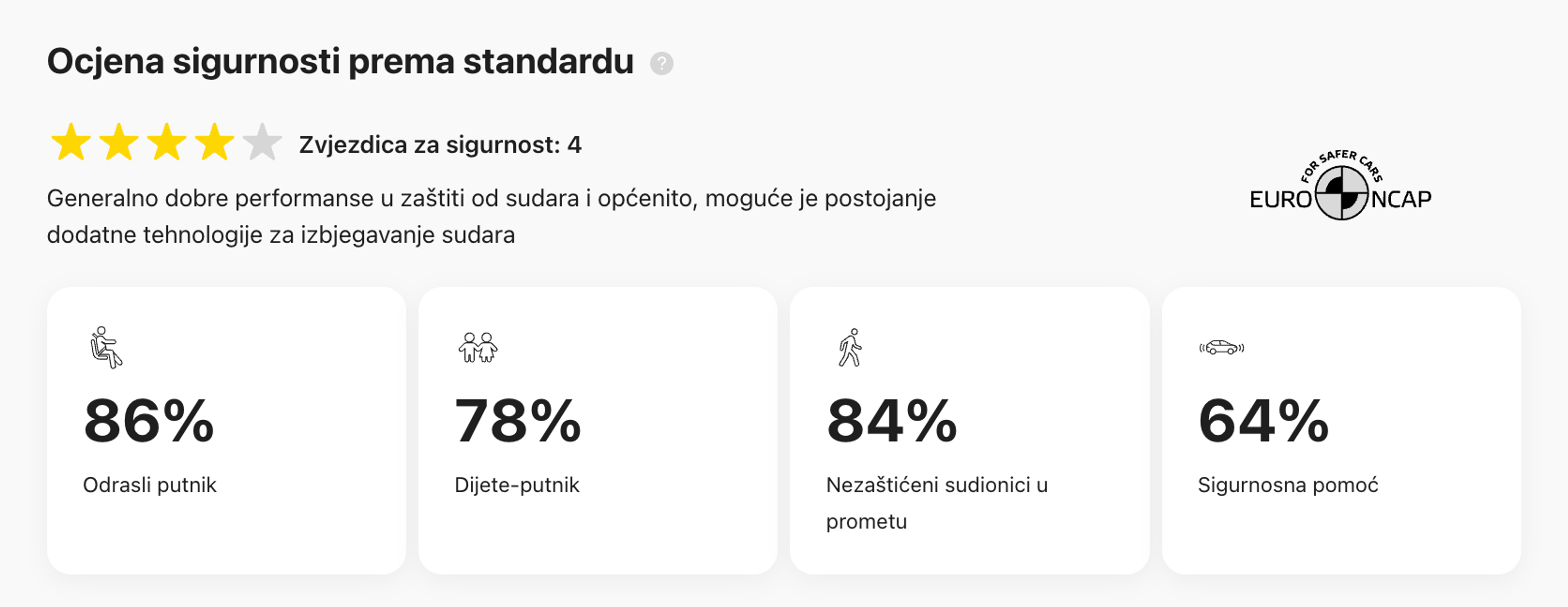- ukupnu ocjenu sigurnosti vozila (od 1 do 5 zvjezdica)