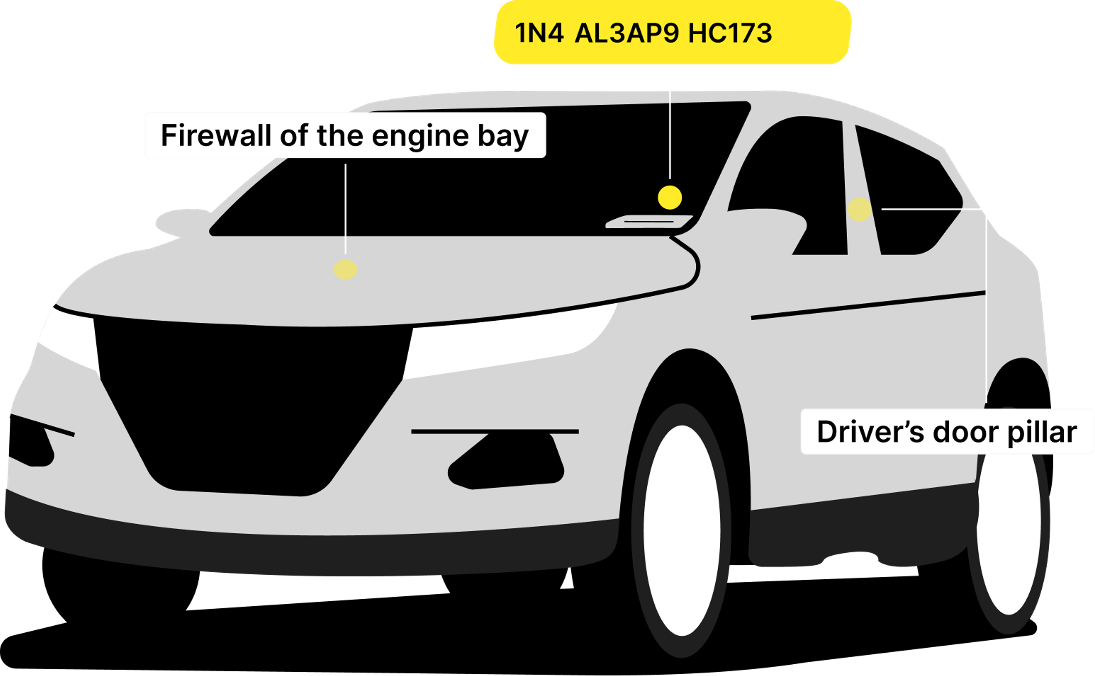 Il VIN è presente in diversi punti del veicolo, per consentire un doppio controllo e ridurre la possibilità di essere vittima di frodi, garantendo così l’integrità del veicolo. Ecco qui di seguito le più comuni posizioni del numero di telaio di una Nissan: