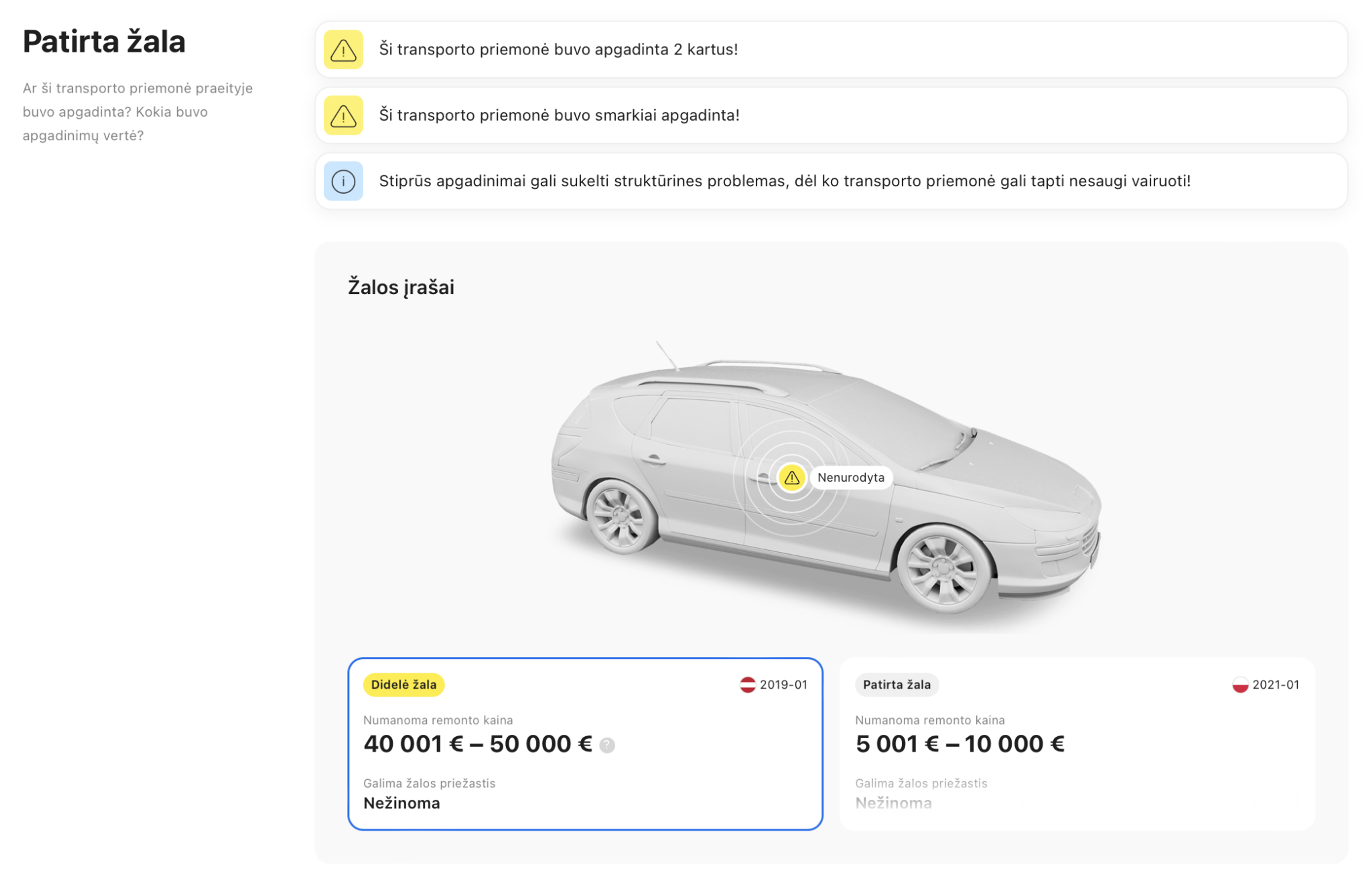 Įrašai apie žalą nebūtinai reiškia, kad automobilio negalima pirkti, ypač jei visos kitos jo savybės atitinka lūkesčius. Svarbu įsitikinti, kad atliktas kokybiškas remontas.