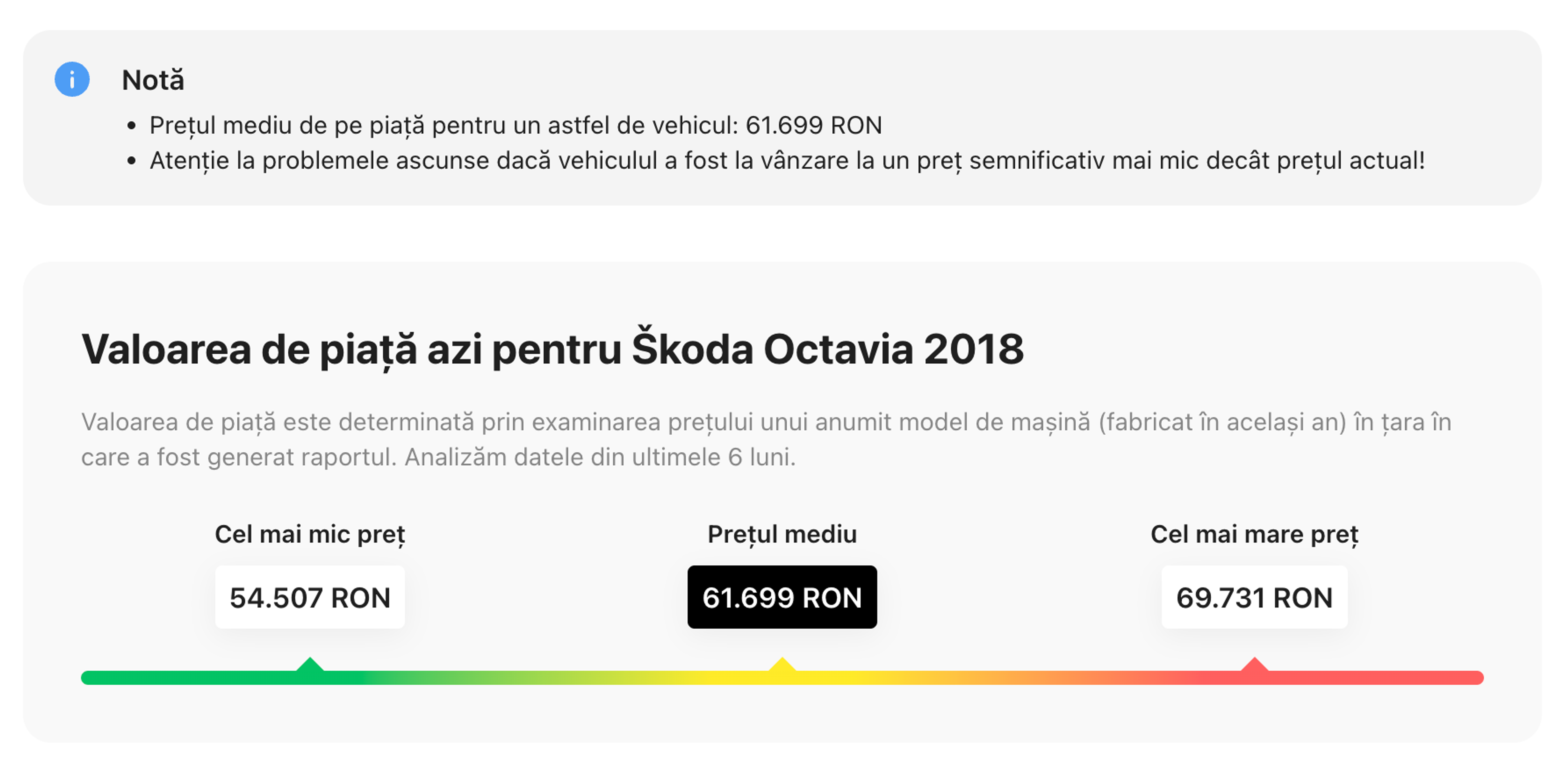 Din raport, utilizatorii ar afla și detalii despre drumul parcurs de mașină de-a lungul vieții – ajunsă în Suedia, revândută unui alt proprietar tot în Suedia, iar în final ajunge în Finlanda. Folosind modele statistice putem oferi și intervalul mediu de preț pentru acest model de mașină, precum și un grafic al kilometrajului mediu (deși această informație nu ar schimba prea multe, având în vedere că modelul din exemplu are kilometrajul dat înapoi!) și multe altele.