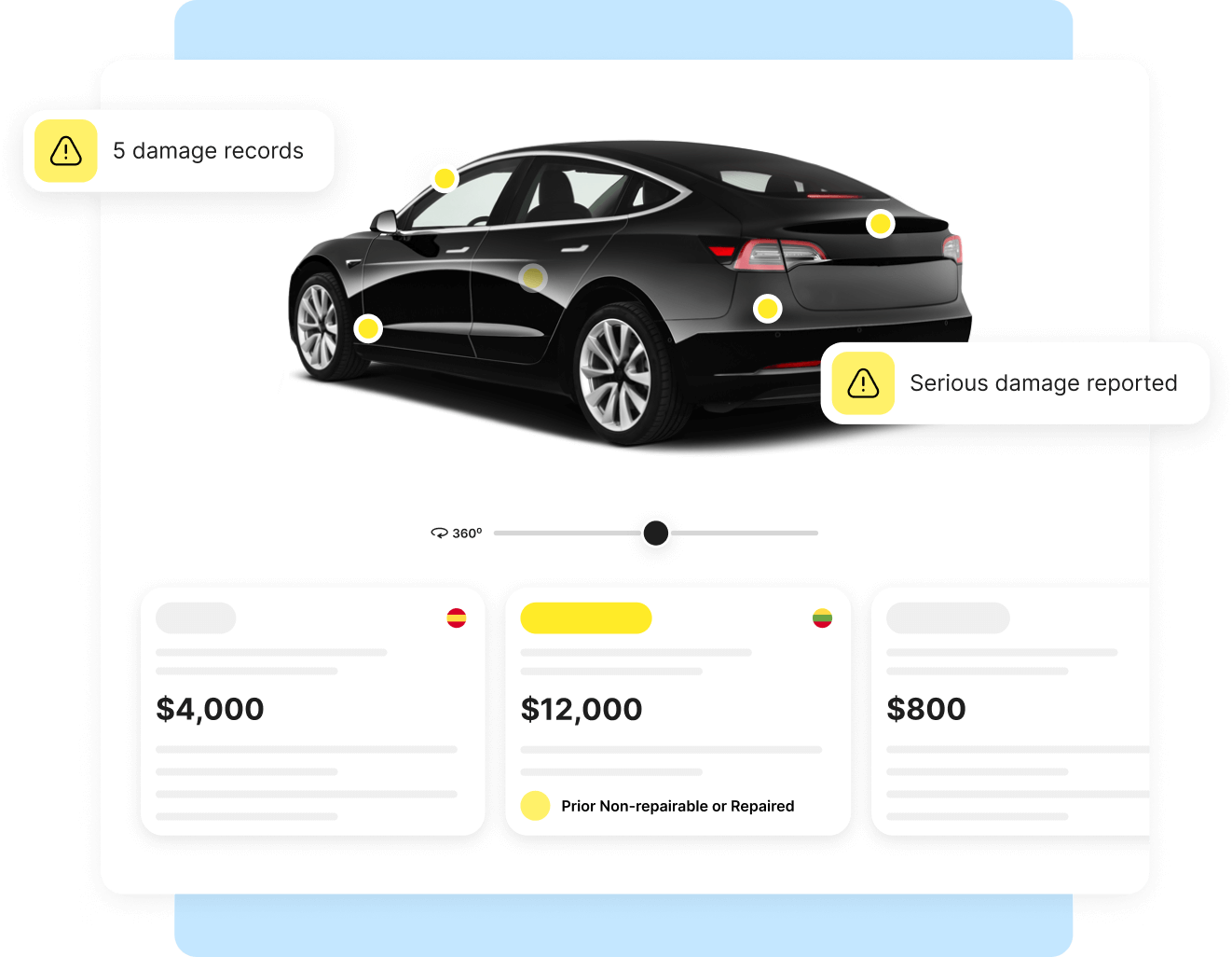 We check over 300 million records to show you where and when the damage occurred, and what the repairs might’ve cost (if that data is available).
