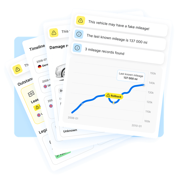 Easily verify a vehicle’s mileage, backed by data from 1000+ trusted sources across 45 countries.