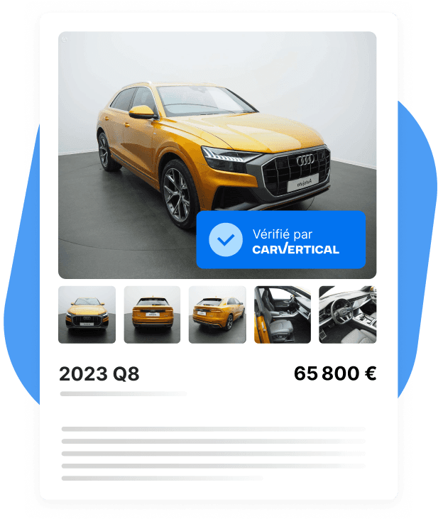 carVertical analyse plus d’un milliard de données pour vous aider à réduire les risques de mauvaises affaires, protéger vos marges et renforcer la crédibilité de vos annonces avec des preuves auxquelles les acheteurs peuvent se fier.