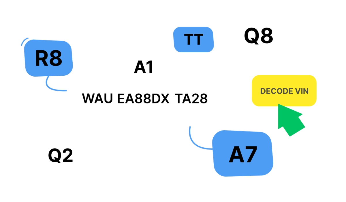 Der Audi VIN-Decoder ist ein Online-Tool zur Entschlüsselung der Fahrgestellnummer eines Audi. Jede Zeichengruppe in der VIN enthält fahrzeugspezifische Informationen, die in ihrer Gesamtheit eine eindeutige Identifizierung ermöglichen.