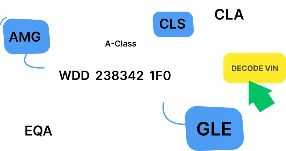 Um unseren kostenlosen Mercedes VIN-Decoder nutzen zu können, benötigst du lediglich die 17-stellige Mercedes FIN. Natürlich ist hier die Kompatibilität entscheidend, damit das gewünschte Modell auch unterstützt wird. Aber keine Sorge, der Mercedes-Benz VIN-Decoder von carVertical deckt alle auf dem Markt erhältlichen Mercedes-Modelle ab: