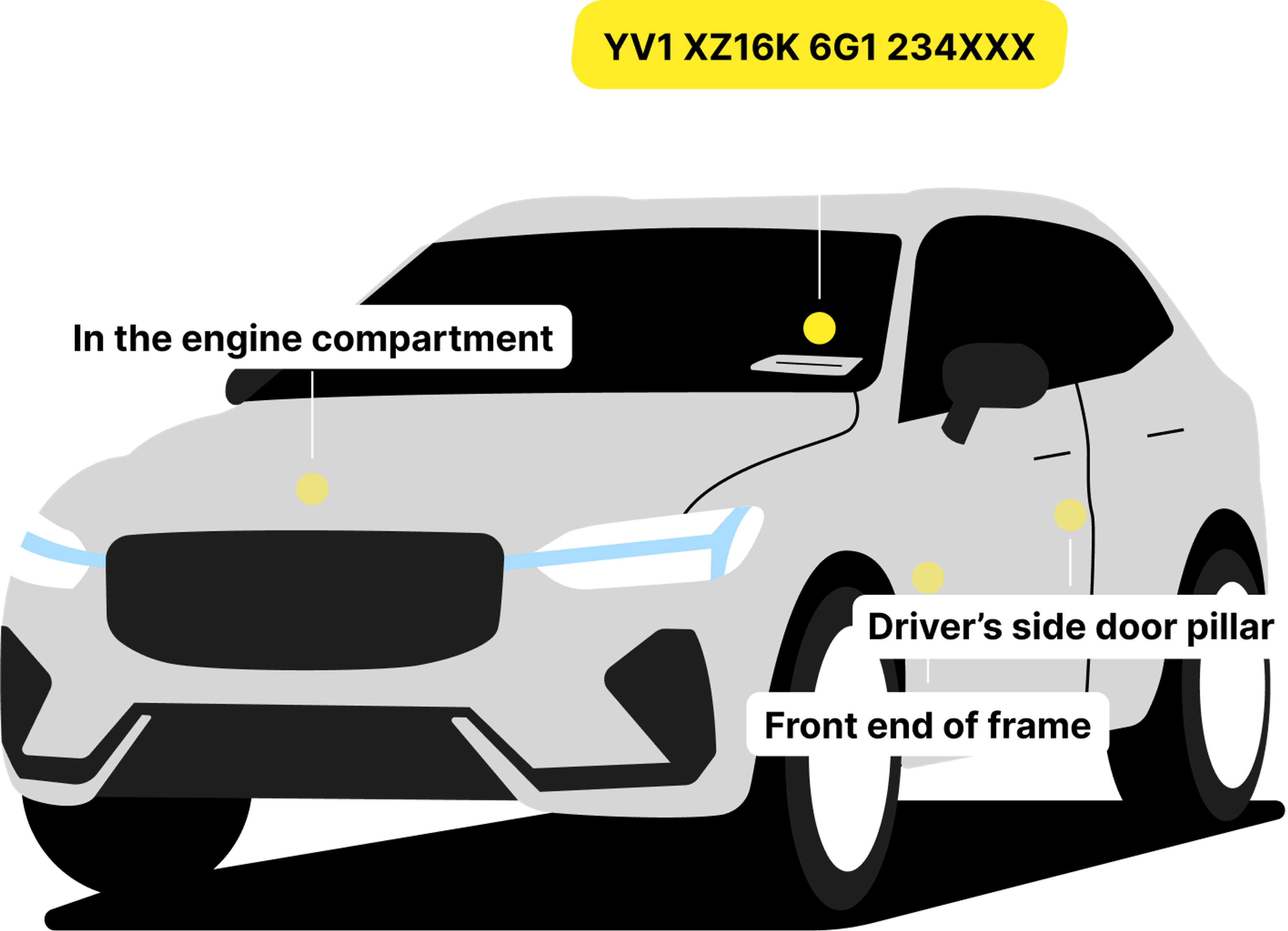 Da das Format der vorgeschriebenen Norm weder die Anzahl noch die Anbringungsorte selbst einschränkt, kann sich die Volvo-FIN je nach Fahrzeug an unterschiedlichen Stellen befinden. Die standardmäßigen Anbringungsorte an deinem Volvo-Modell sind in der Betriebsanleitung beschrieben.