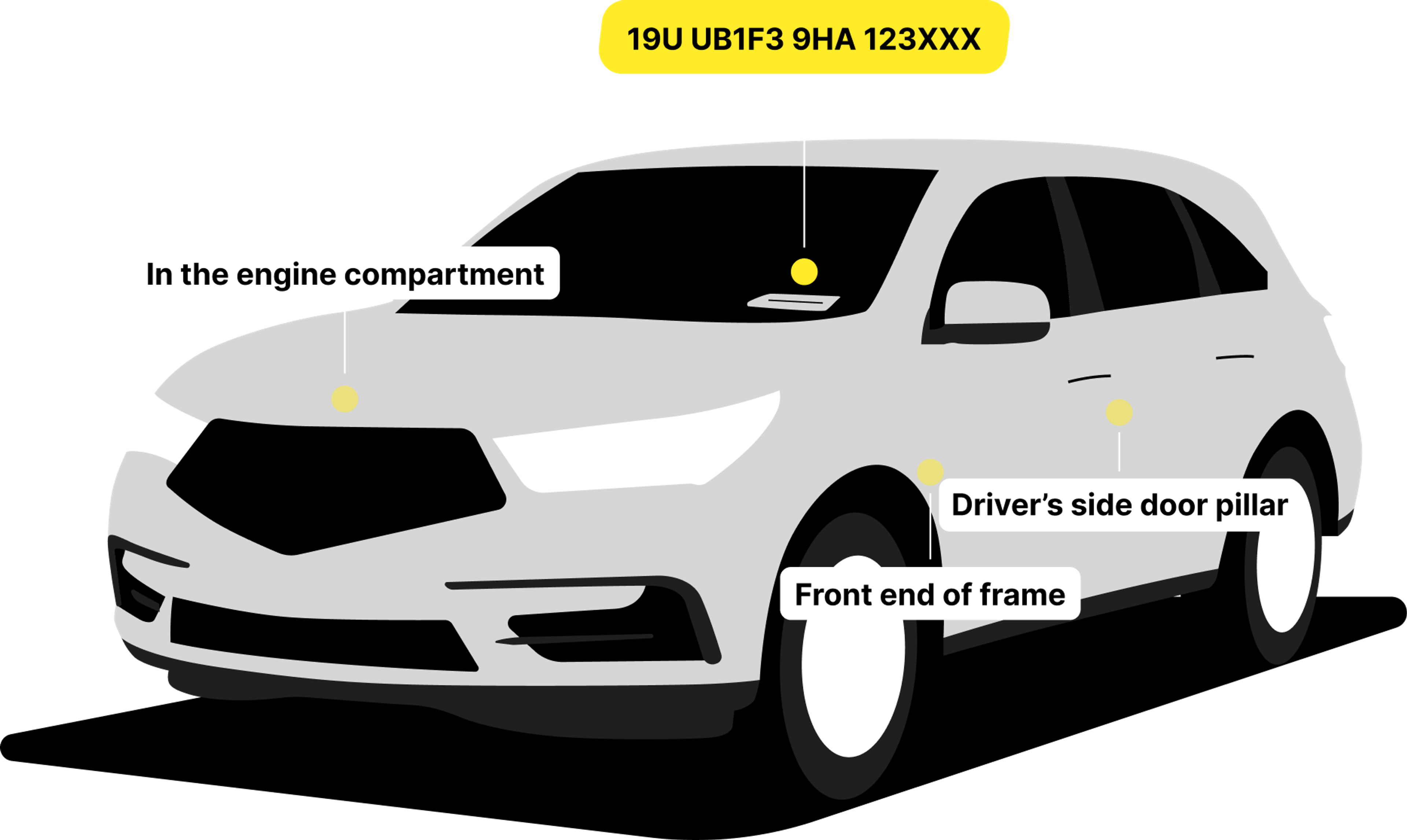 The easiest way to find Acura’s VIN number is to look at the vehicle's title and registration documents. However, there are a few additional places that you can also check: