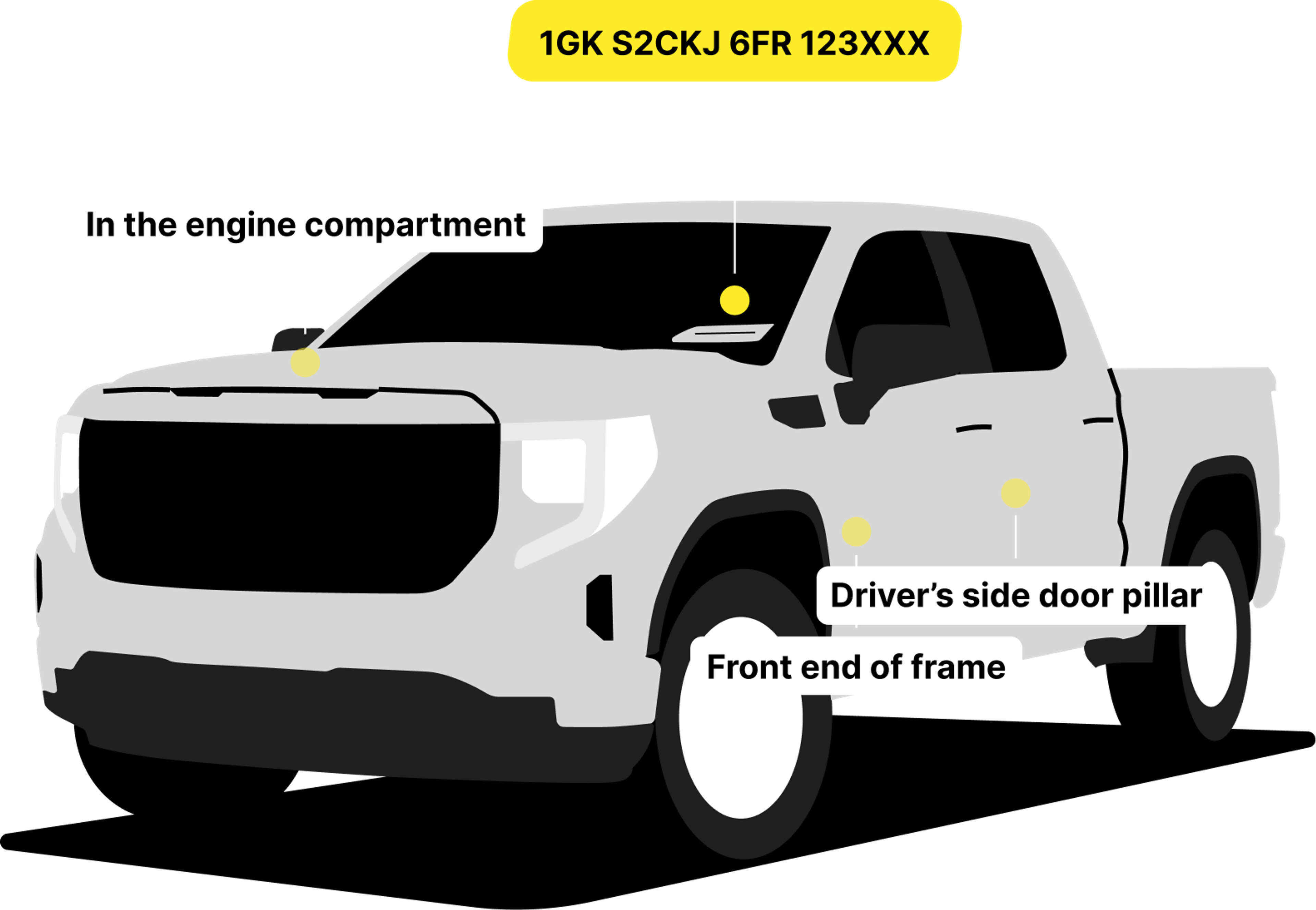 Each time a GMC vehicle visits a workshop, is involved in an accident, or gets stolen, the VIN is used to record these events. This way, car owners and buyers can use their vehicles’ VINs to get a full vehicle history report and check changes in ownership, access accident history, mileage records, and more.