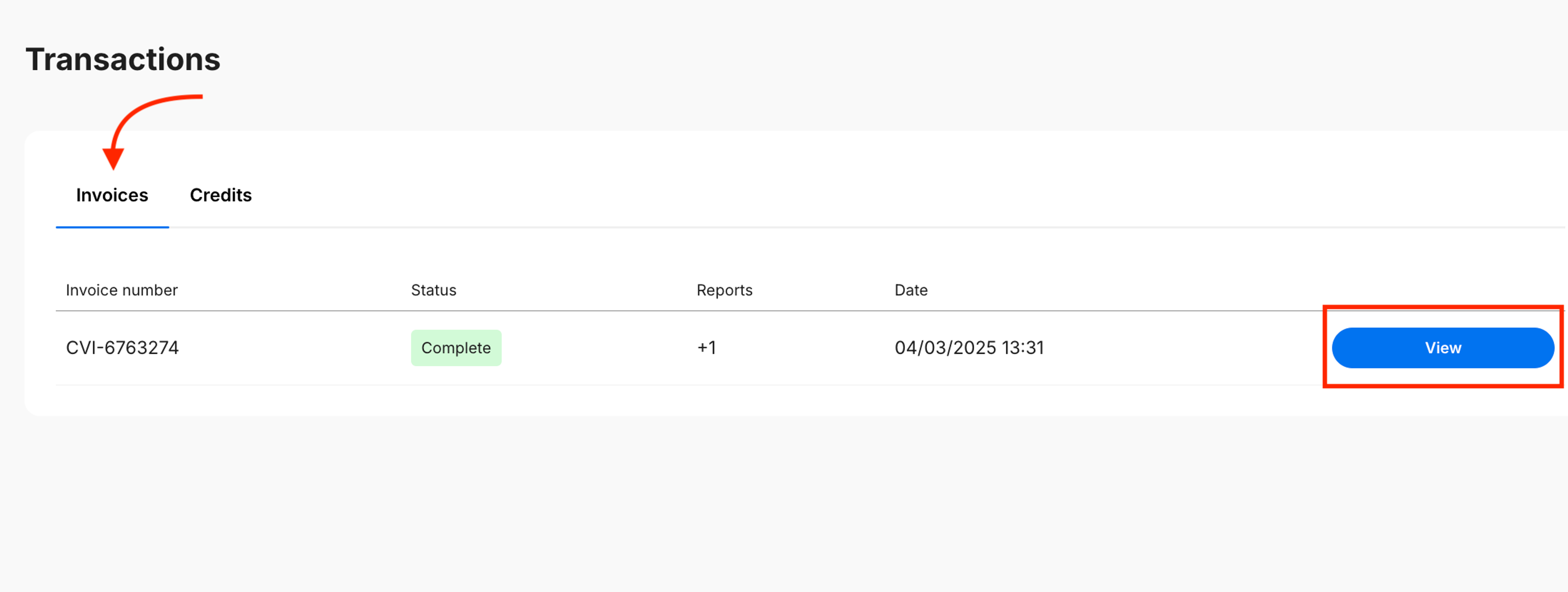 3. Find the payment you want an invoice for and click View
