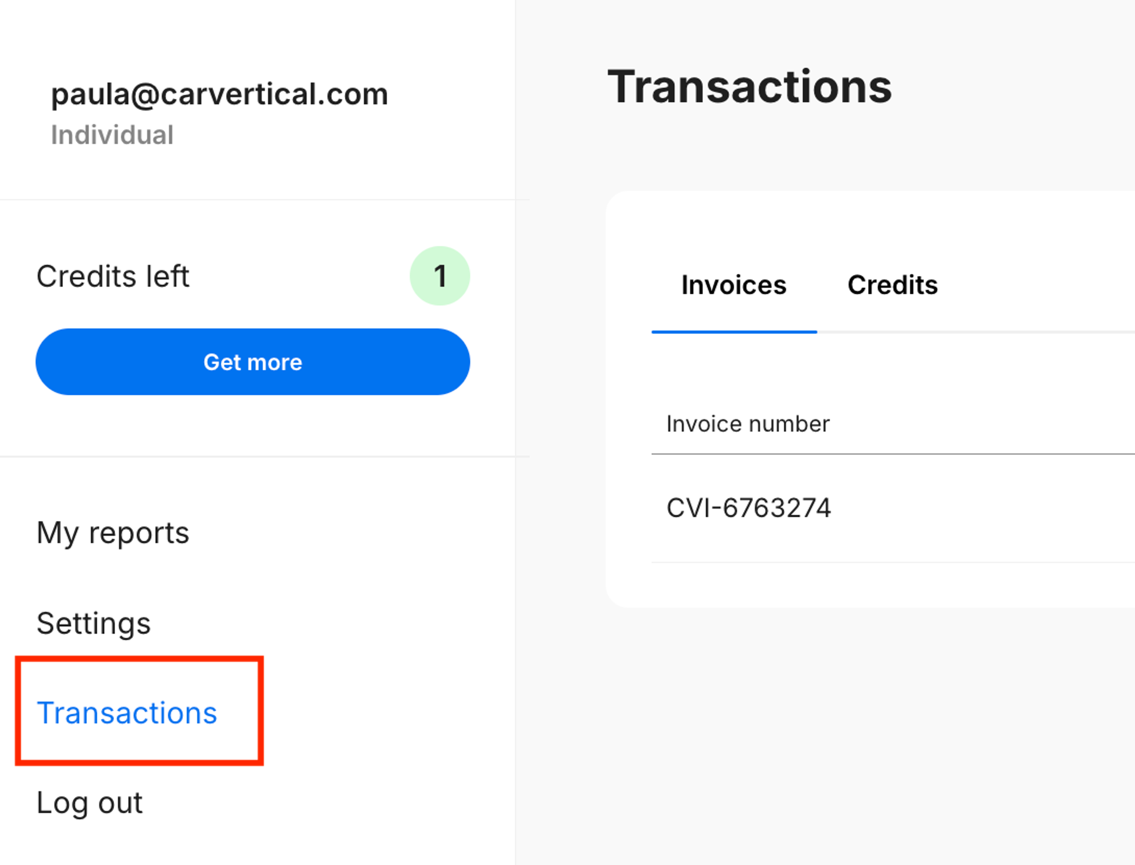 1. Log in to your carVertical account