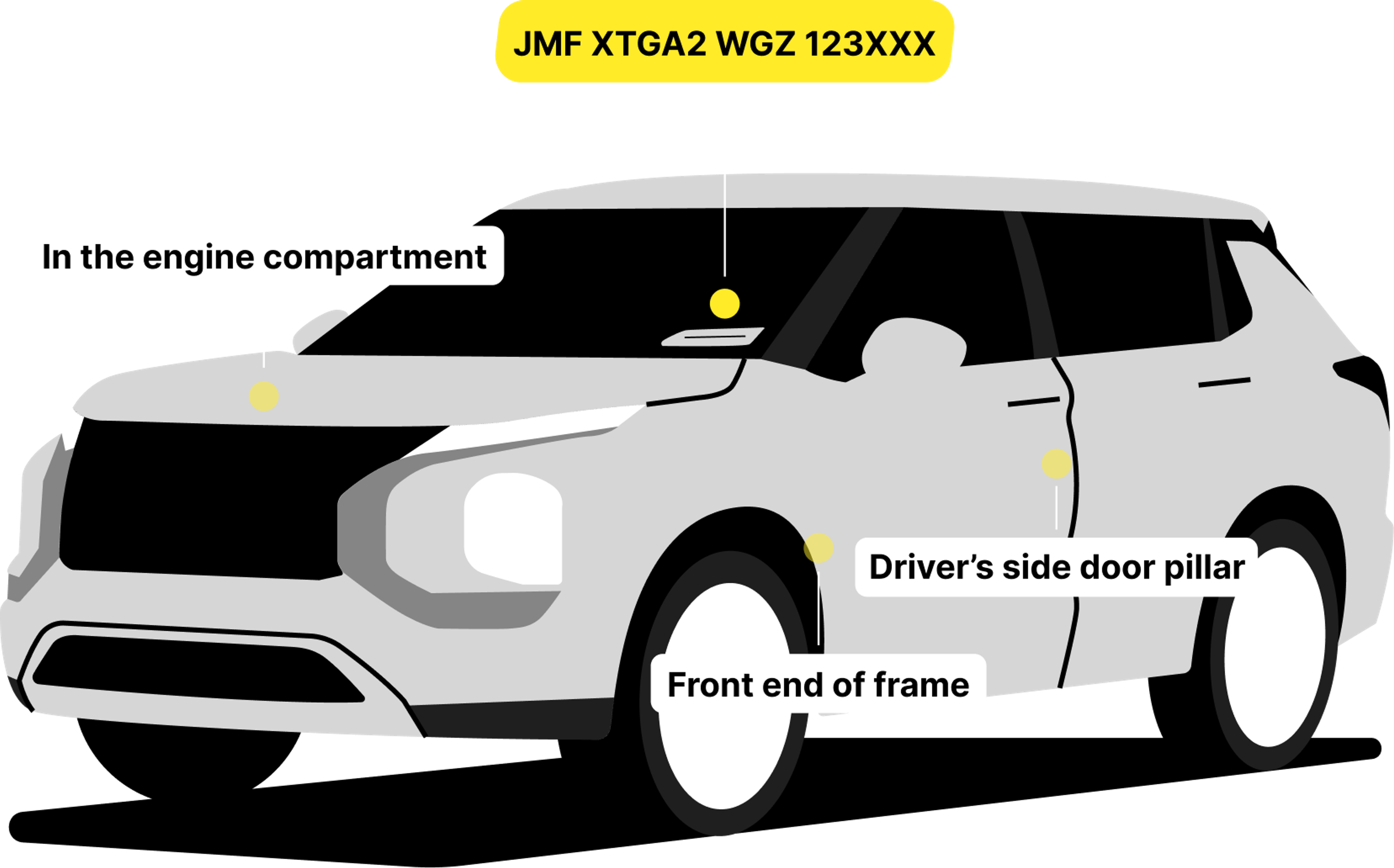 - Engine bay. You can also find the Mitsubishi VIN on the firewall of a car.