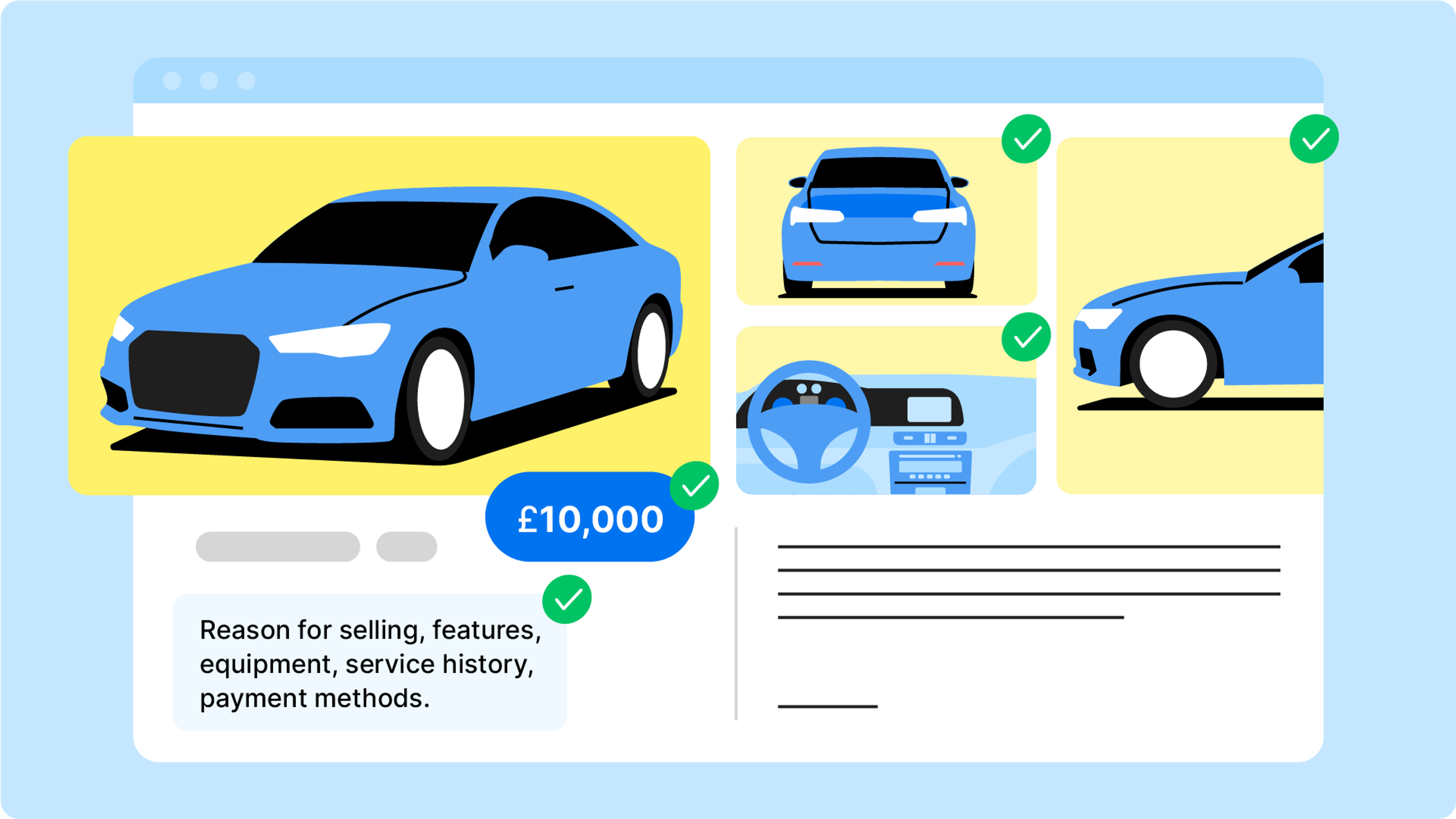 - Include a brief description. Short and informative is key – describe the issues, list any recent maintenance work, mention the advantages and optional extras.