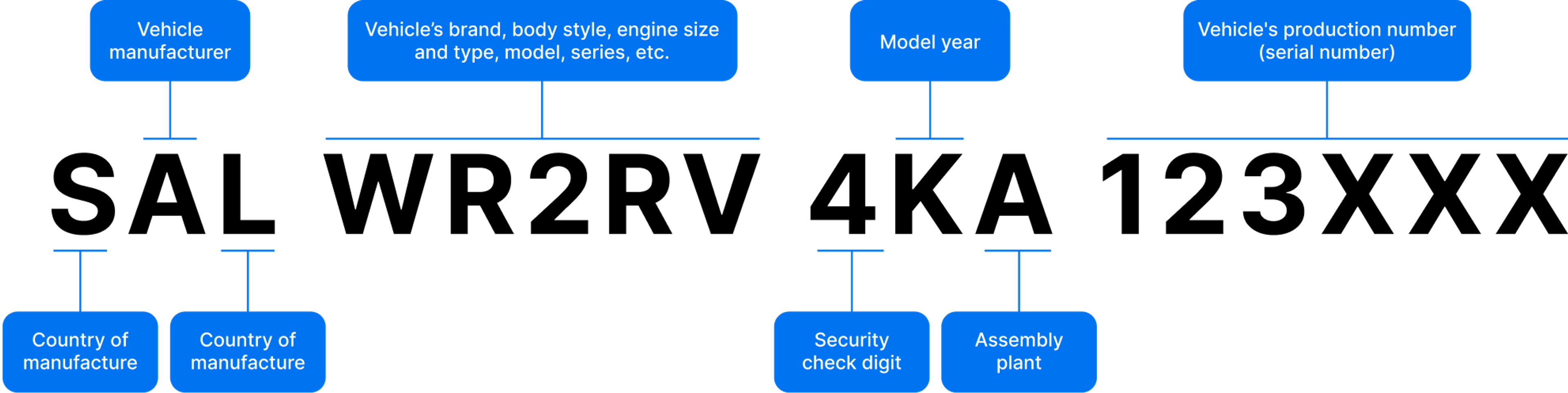 Such Land Rover VIN breakdown helps to perform a quicker visual check of a VIN number, meaning that you can only focus on the first three characters (the World Manufacturer Identifier). If you're more interested in the vehicle's specifications, you can skip ahead to the second section. It’s a quick way to reveal details that matter the most.