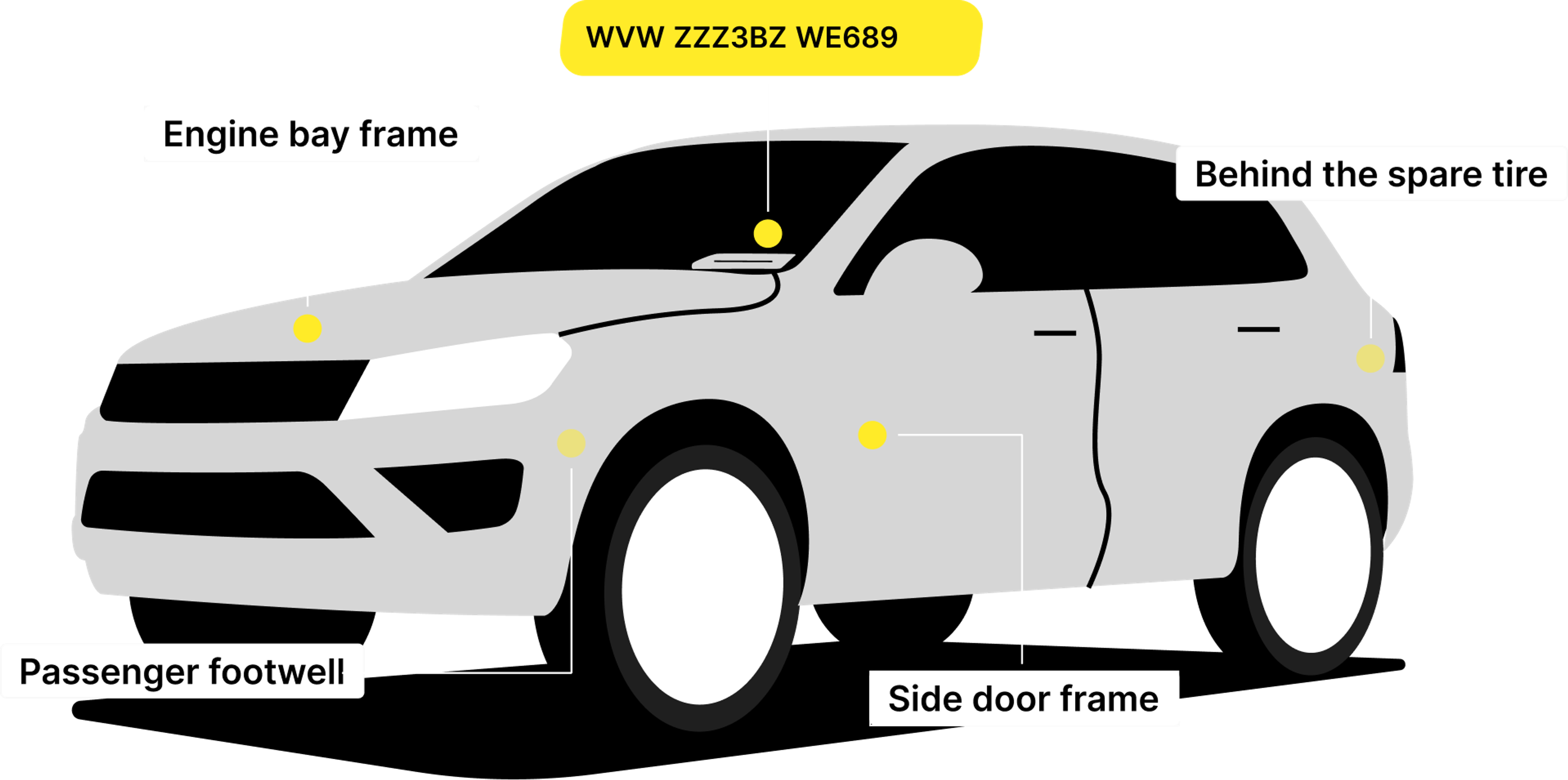 There are several places where you can find the Volkswagen VIN number. By placing the Volkswagen VIN number in several locations, automobile manufacturers make it harder to forge vehicle identification numbers. Here’s where you’ll find the VW VIN number: